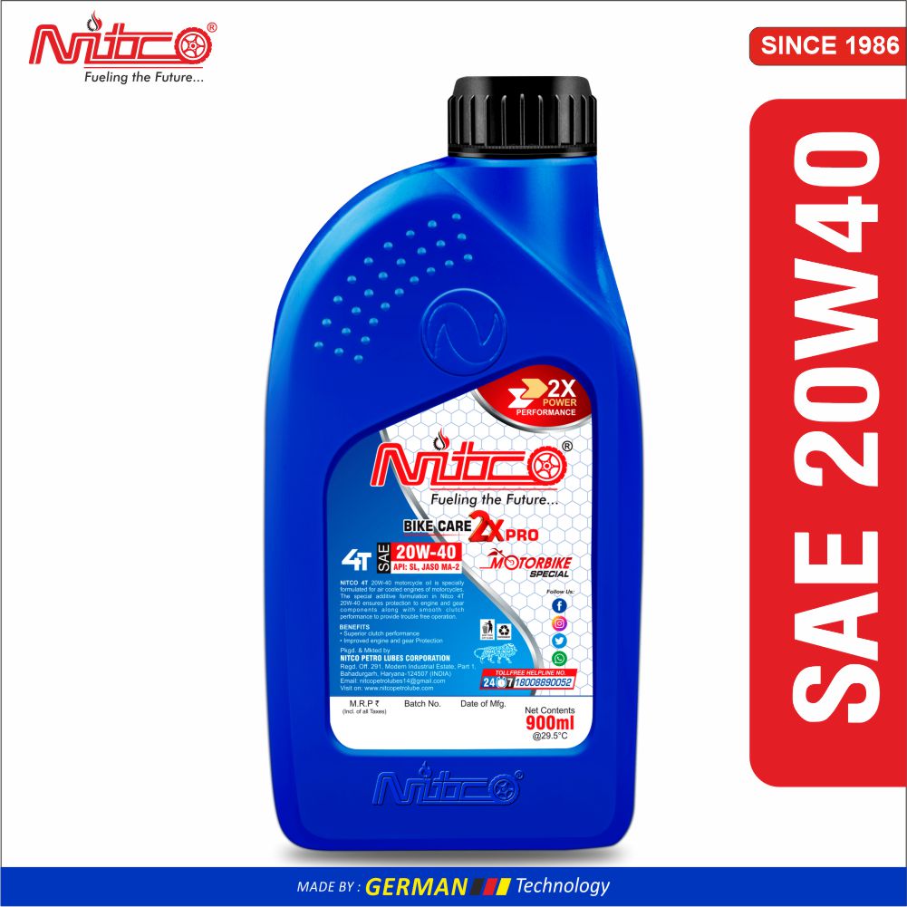 Nitco Bike Care 20W40 API SL is a high-quality motorcycle engine oil designed to meet. Four-stroke motorcycle engine requirements.