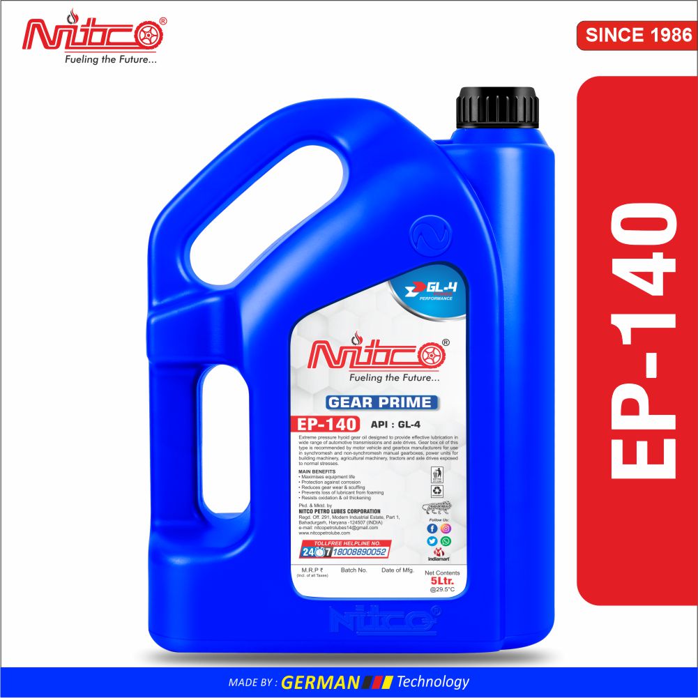 NITCO Gear Prime EP 140 Oil is a high-performance gear with extreme pressure additives and exceptional oxidation stability, ensuring a long service life. Meeting API service classifications, it is ideal for spiral bevel gear transmissions in cars, buses, and trucks that require EP-type lubricants.